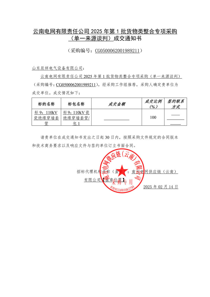 2025.02.14 110kV瓷絕緣穿墻套管中標(biāo)通知書